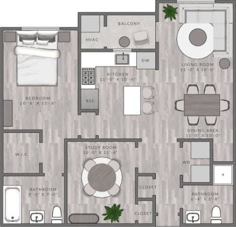 Apartment Model: A1-1x1 - EastCall For Rates1 Bedroom, 1 Bath, 857 sq ftUnavailable![]()