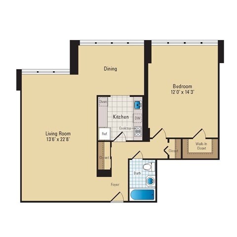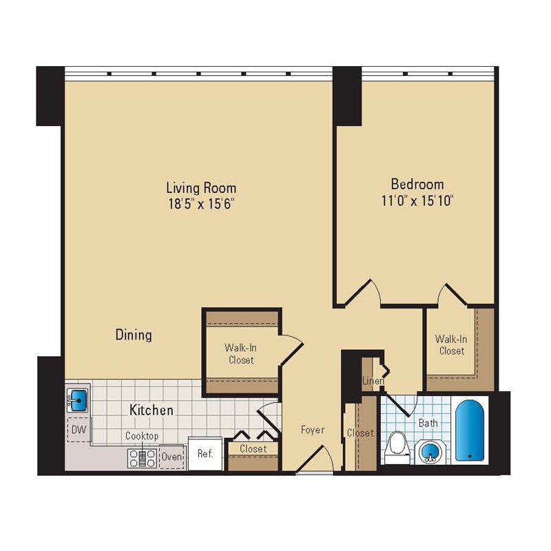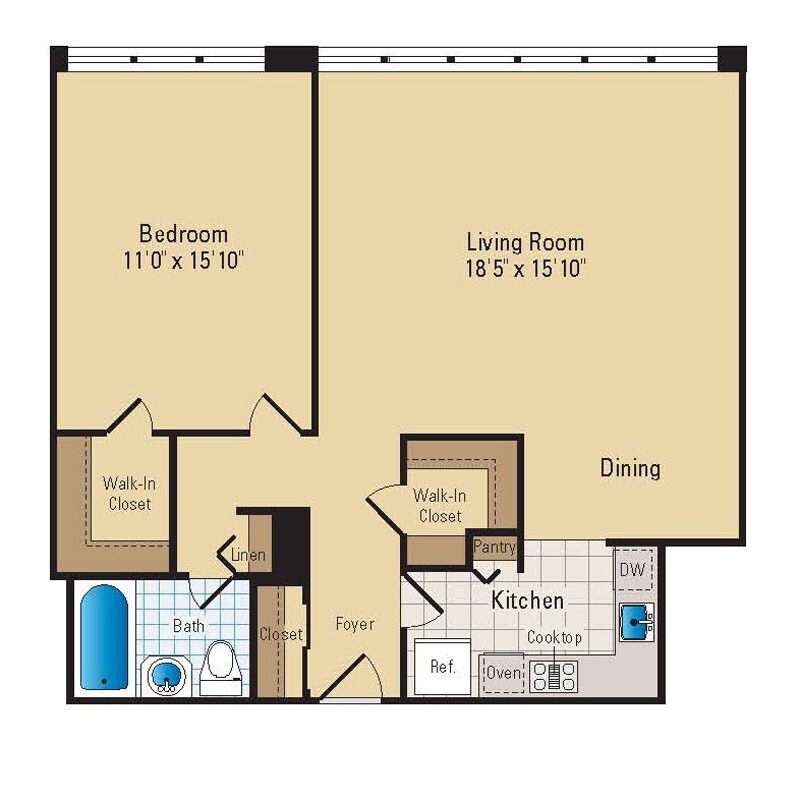 Studio, 1 Bath, 570 sq ftAvailable NowModel Gallery