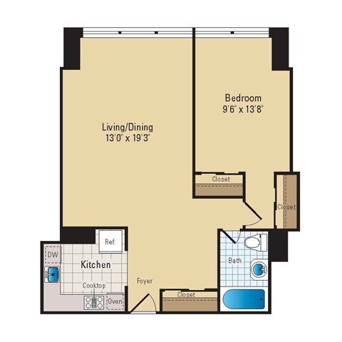 Studio, 1 Bath, 555 sq ftAvailable NowModel Gallery