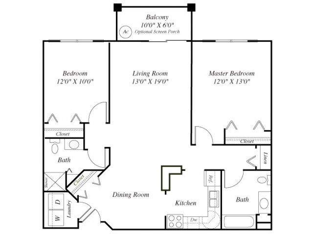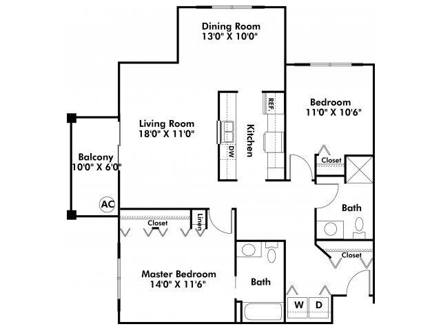 Apartment Model: 2 Bedroom Corner Unit$1,7252 Bedroom, 2 Bath, 1060 sq ftUnavailable![]()