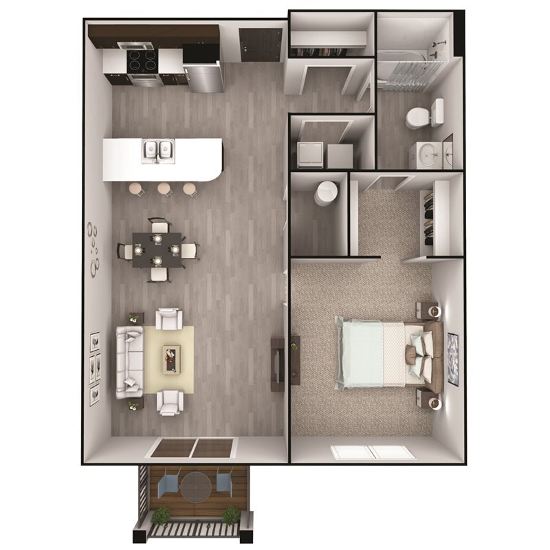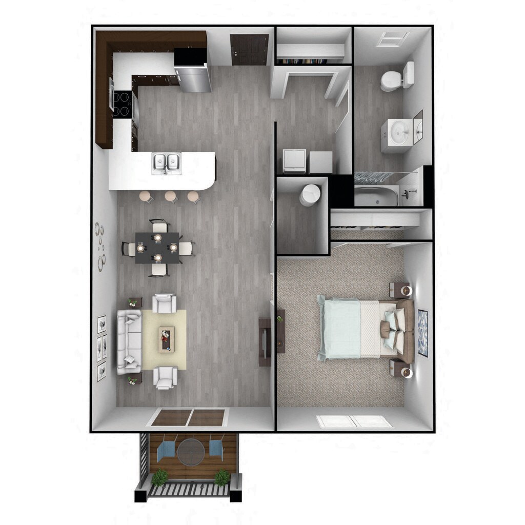 Apartment Model: 1 Bedroom, 1 Bathroom - 744 SFFrom $1,0751 Bedroom, 1 Bath, 744-753 sq ftAvailable NowFloorplansPhotos![]()