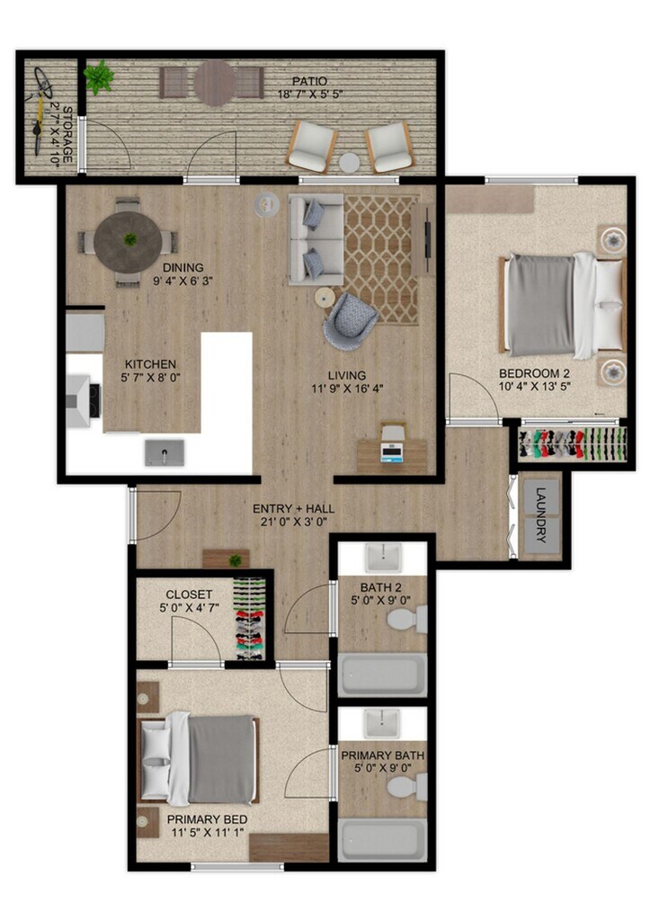 2 Beds, 2 Baths, 1034 sq ftAvailable NowModel Gallery