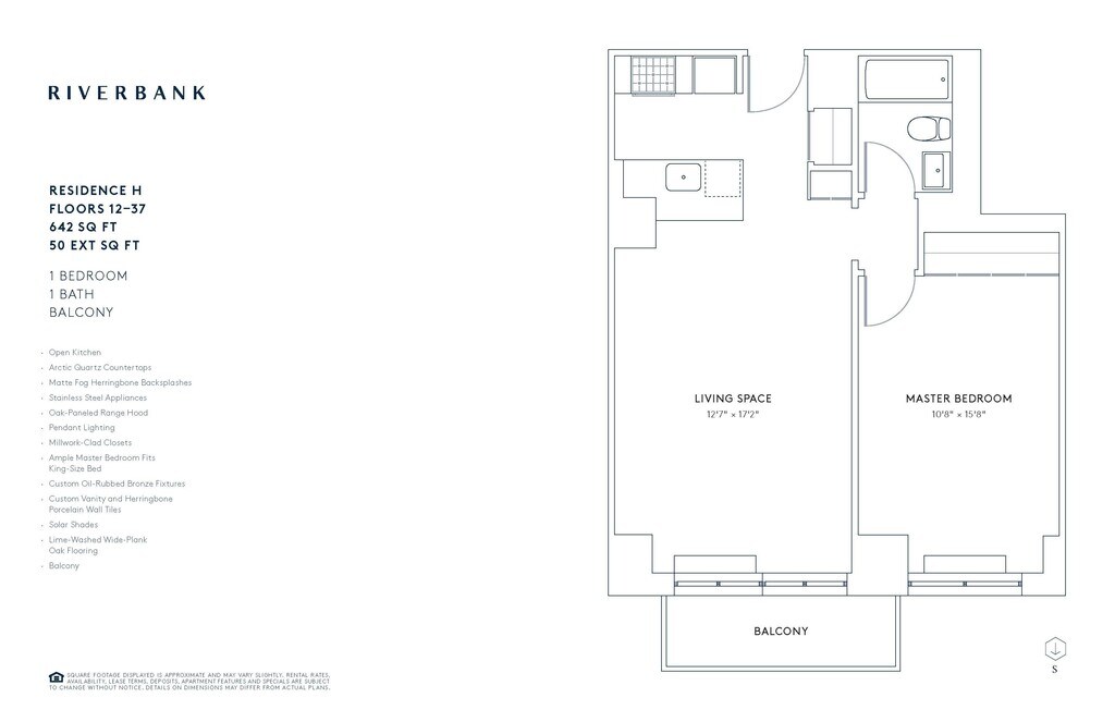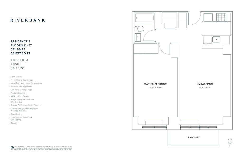 A Line Floors 12-37 (1 Bed) - Floorplan 1 H Line Floors (1 Bed)