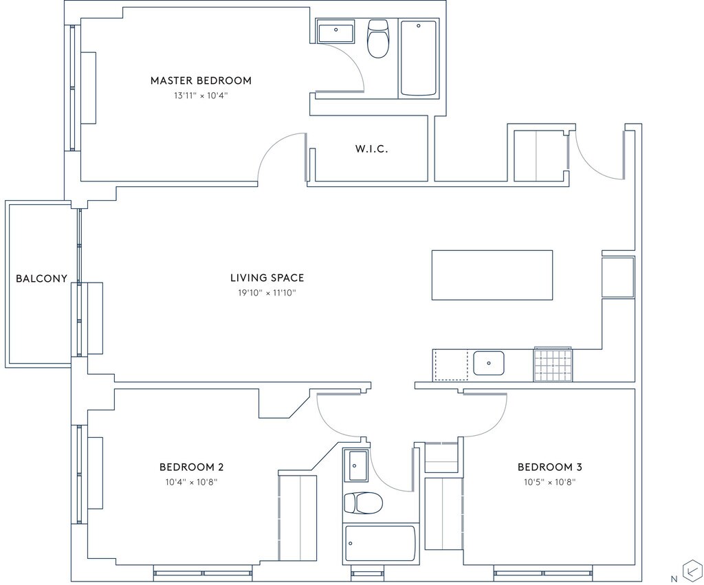L Line Floors 3-11 (Studio) - Floorplan 1 Apartment Unit: 07LApartment Model: L Line Floors 3-11 (Studio)Studio, 1 Bath, 413 sq ftAvailable Now![]()