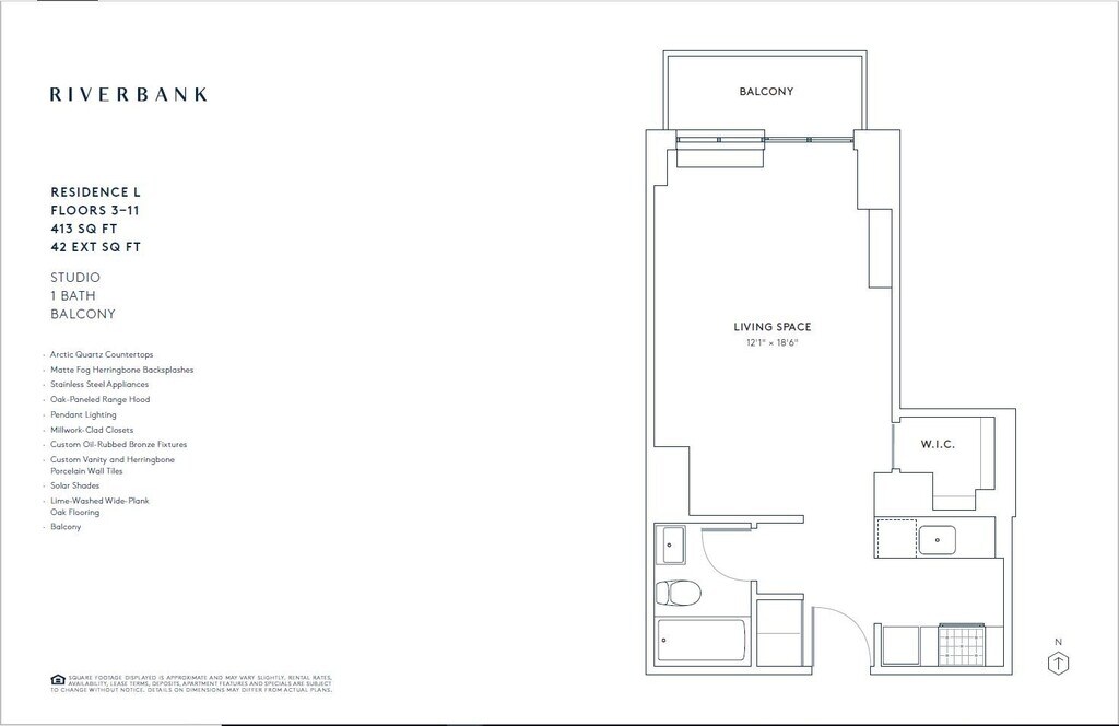 Apartment Model: L Line Floors 3-11 (Studio)Studio, 1 Bath, 413 sq ftAvailable Now![]()