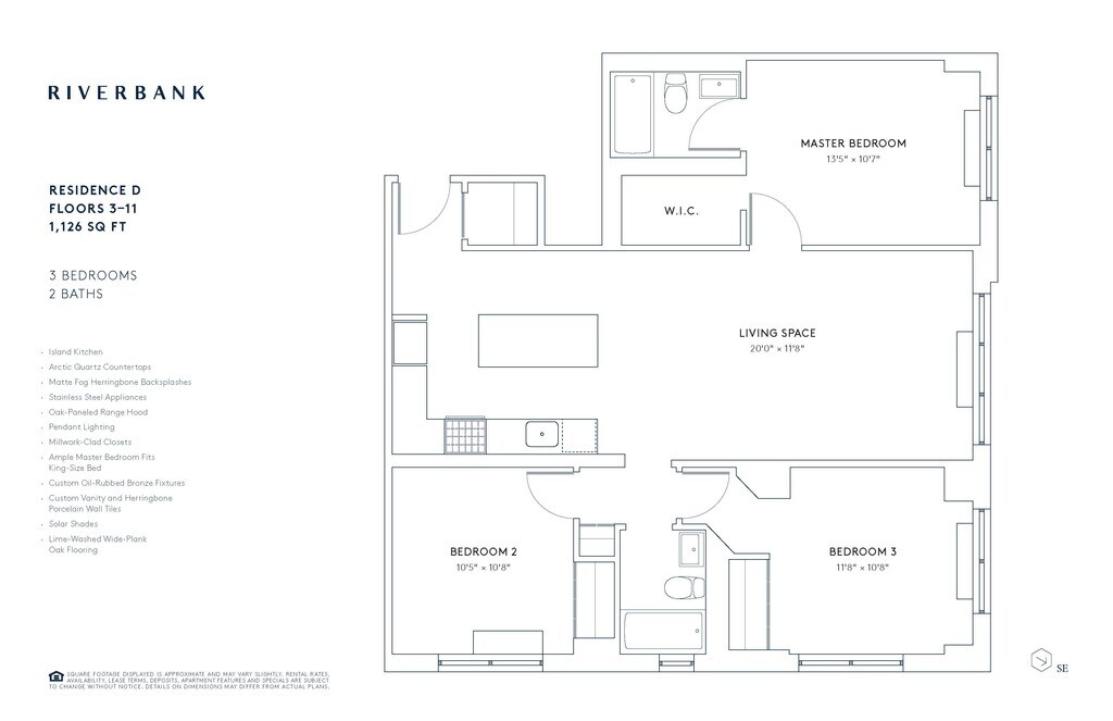 M Line Floors 3-11 (1 Bed) - Floorplan 1 A Line Floors 3-11 (1 Bed)