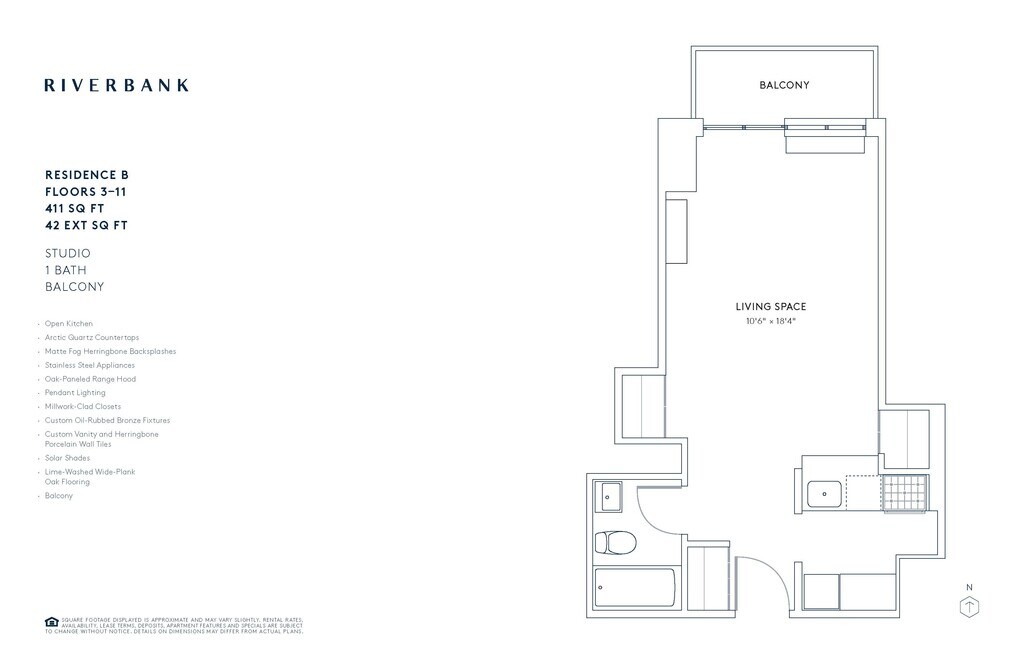 Apartment Model: B Line Floors 3-11 (Studio)Studio, 1 Bath, 411 sq ftUnavailable![]()