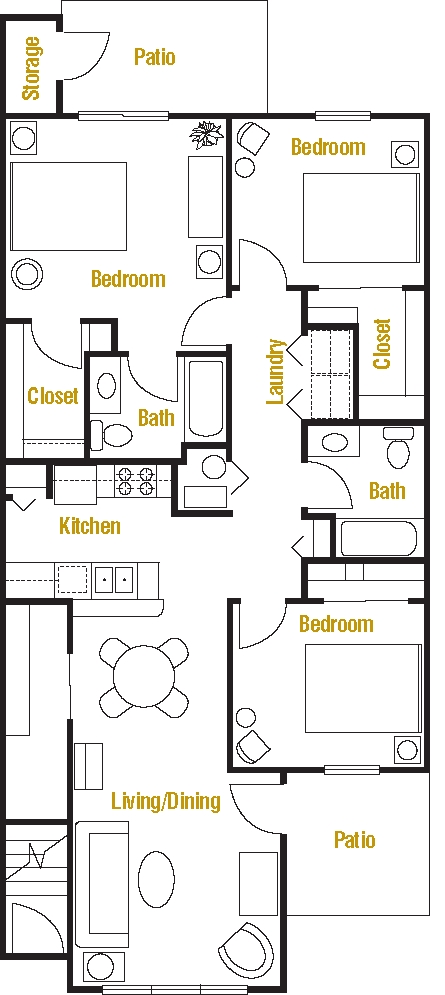 Apartment Model: Three Bedroom3 Bedroom, 2 Bath, 1181-1355 sq ftUnavailable![]()