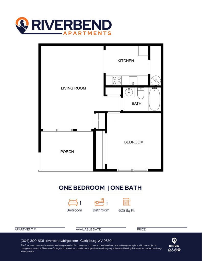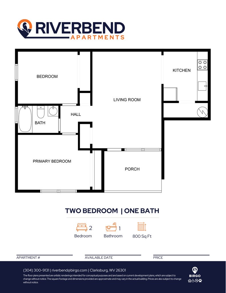 - Unit Description- APARTMENT BENEFITS: - Located within the historic city of Clarksburg, less than an hour from Morgantown - Plenty of green space and outdoor seating - Close proximity to shopping centers, public transportation, Clarksburg Splash Zone, and the Louis A. Johnson VA Medical Center - Build your credit automatically! - Birgo reports your on-time rent payments to the credit agencies, which can raise your credit score! - Unlike our competitors, your rent will never be raised above the market rate for your unit! - Last (but not least) you get landlords who care! APARTMENT AMENITIES: - Stylish, neutral decor - Laminate and wood flooring - Open floor plan - On-site maintenance - 24 hour security surveillance - Laundry facilities on-site - Water and trash are included in rent - Balcony or porch on all units *To schedule a showing, click on one of the times at the top of the page to put your showing on the calendar. *If you’re ready to apply, start our online application by clicking the “Apply Now” tab at the top of this page. *Optional flexible rent payment schedules are available with our partner, Flex. Note: Photos of the apartment shown in this listing may be replicas and may not be the actual apartment you’re looking to lease. Please schedule a showing to see the actual apartment. - Model Rent and Fees- Price- $770