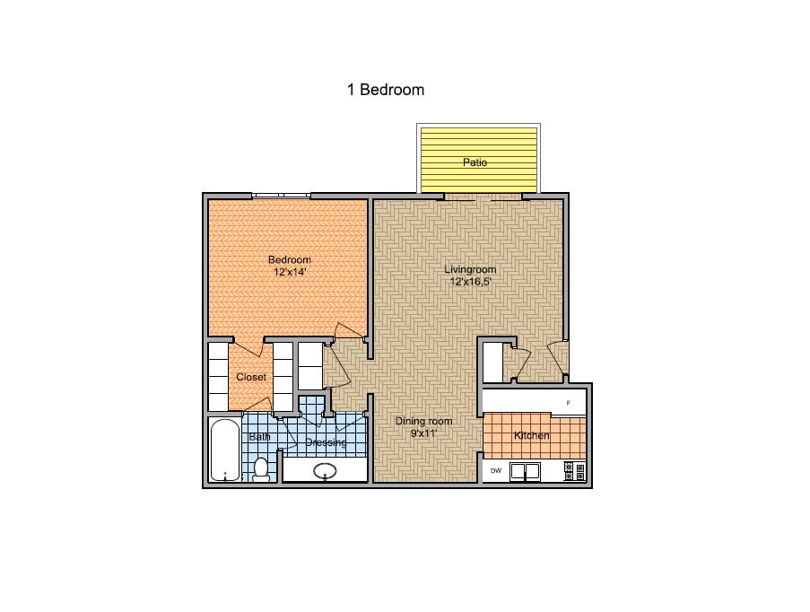 1x1Riverbend Apartments - Floorplan 1 ![]()