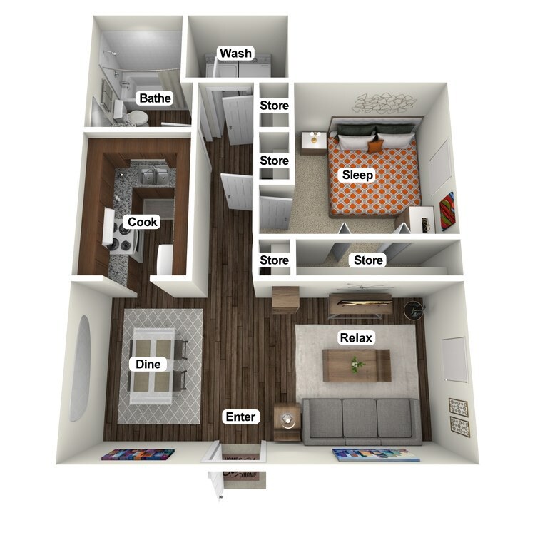 Apartment Model: 1 Bedroom 1 Bath$7751 Bedroom, 1 Bath, 767 sq ftAvailable Now![]()