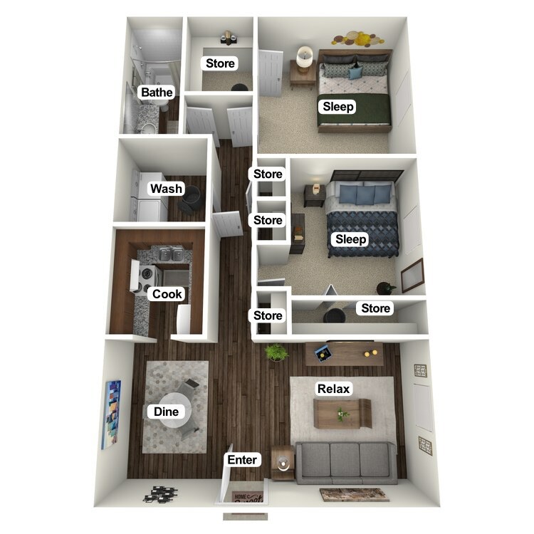 Apartment Model: 2 Bedroom 1 BathFrom $8502 Bedroom, 1 Bath, 982 sq ftAvailable Now![]()