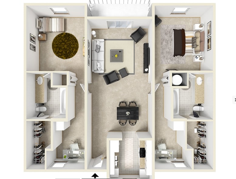 2 Beds, 2 Baths, 1000 sq ftAvailable NowModel Gallery