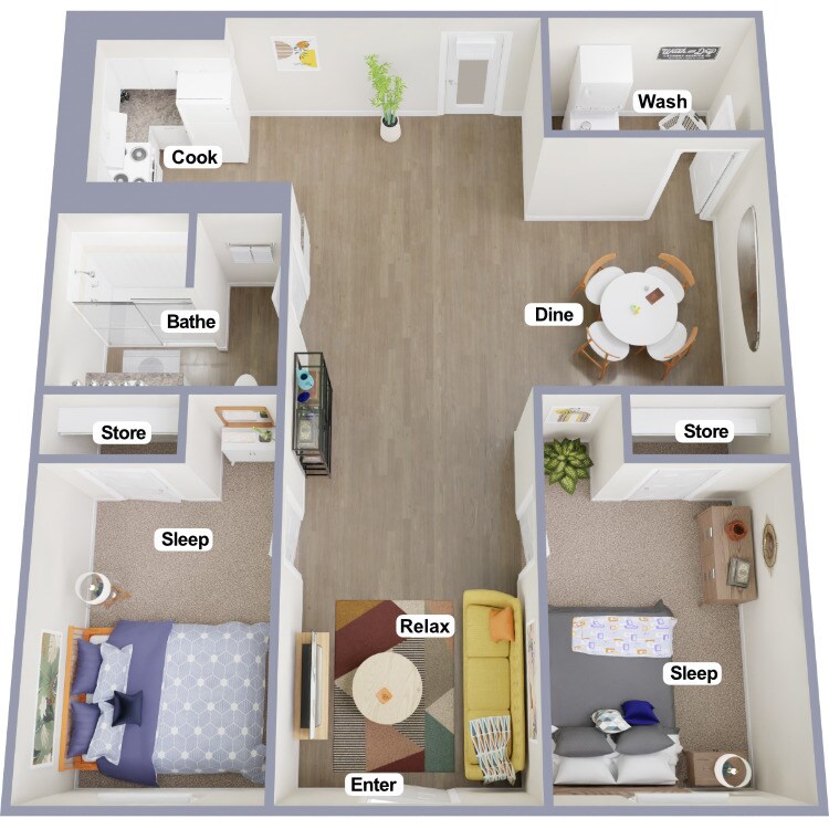 2 Beds, 1 Bath, 810 sq ftModel Gallery