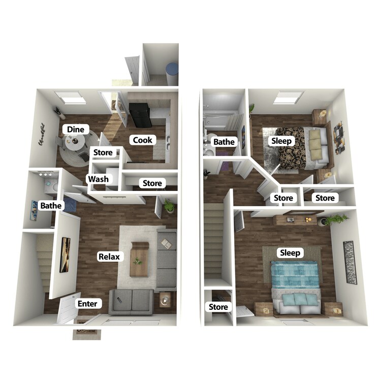 2 Beds, 1.5 Baths, 850 sq ftAvailable NowModel Gallery
