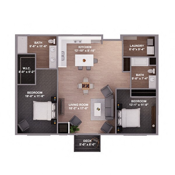 Apartment Model: 2 Bedroom 2 Bath$1,5602 Bedroom, 2 Bath, 1007-1256 sq ftUnavailable![]()