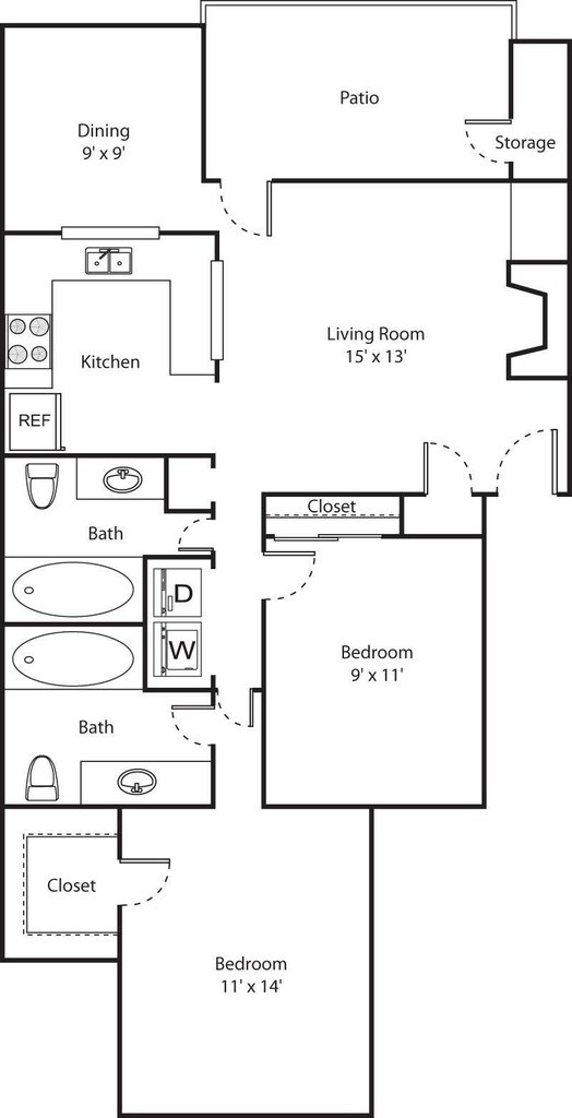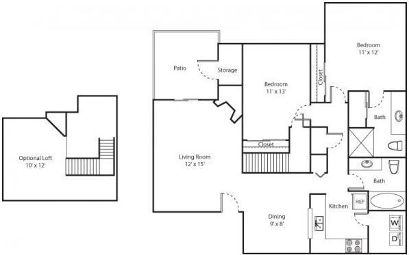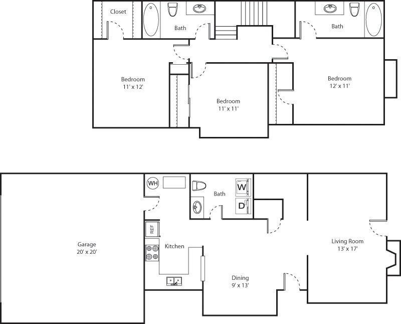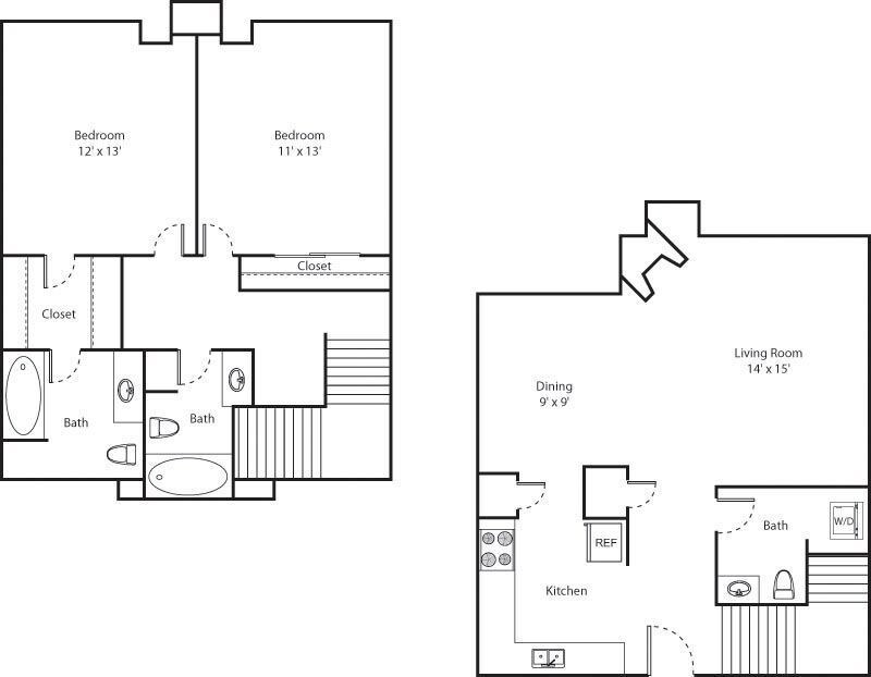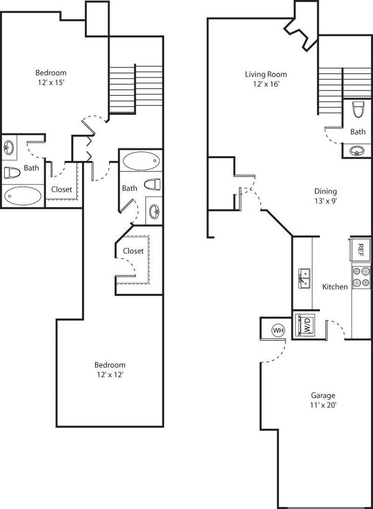 2x2 Reno - Floorplan 1 Floor plans are artist's rendering. All dimensions are approximate. Actual product and specifications may vary in dimension or detail. Not all features are available in every rental home. Prices and availability are subject to change. Base rent is based on monthly frequency. Additional fees may apply, such as but not limited to package delivery, trash, water, amenities, etc. Deposits vary. Please see a representative for details.