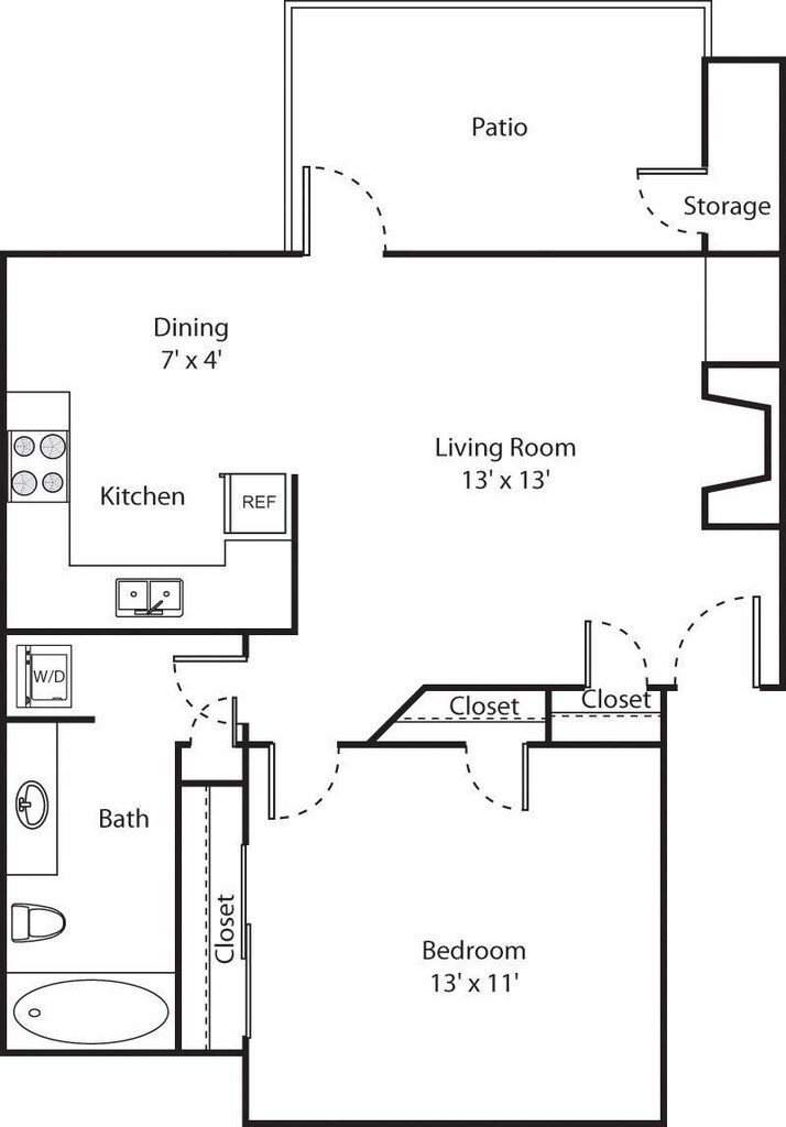 1x1 - Floorplan 1 Floor plans are artist's rendering. All dimensions are approximate. Actual product and specifications may vary in dimension or detail. Not all features are available in every rental home. Prices and availability are subject to change. Base rent is based on monthly frequency. Additional fees may apply, such as but not limited to package delivery, trash, water, amenities, etc. Deposits vary. Please see a representative for details.
