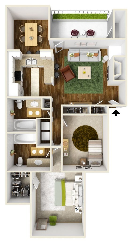 Apartment Model: 2x2 RenoFrom $1,7992 Bedroom, 2 Bath, 935 sq ftAvailable NowFloor plans are artist's rendering. All dimensions are approximate. Actual product and specifications may vary in dimension or detail. Not all features are available in every rental home. Prices and availability are subject to change. Base rent is based on monthly frequency. Additional fees may apply, such as but not limited to package delivery, trash, water, amenities, etc. Deposits vary. Please see a representative for details.