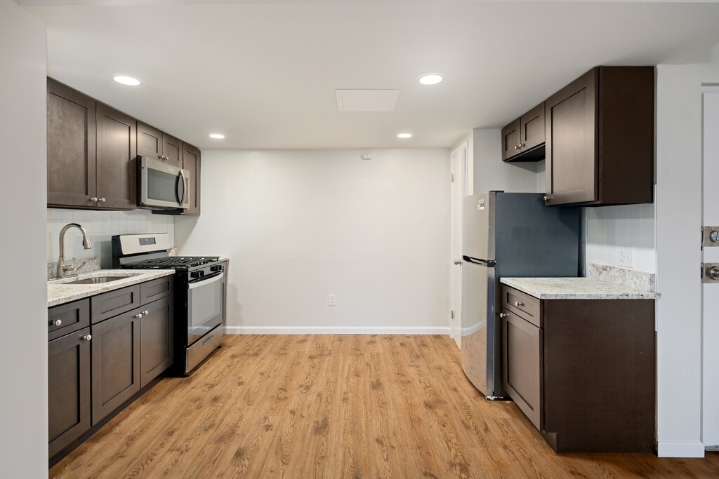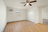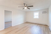 Renovated large one-bedroom home with brand new kitchens and appliances, hard surface floors in living area, new carpet in the bedroom and updated bathroom. No need to bring your old window air conditioner, new through-wall air-conditioning included! On site laundry facilities.