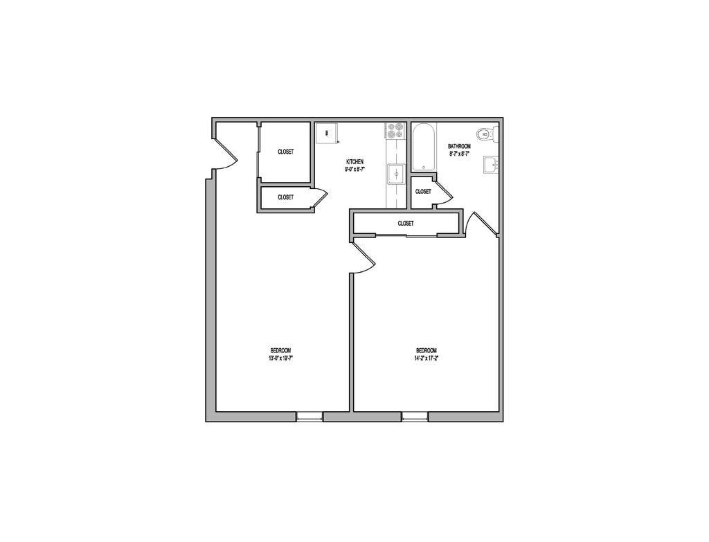 Oversized, renovated one-bedroom home with brand new kitchens and appliances, hard surface floors in living area, new carpet in the bedroom and updated bathroom. No need to bring your old window air conditioner, through-wall air conditioning included. Laundry facilities on site. Be close to everything at RiverEdge Square!