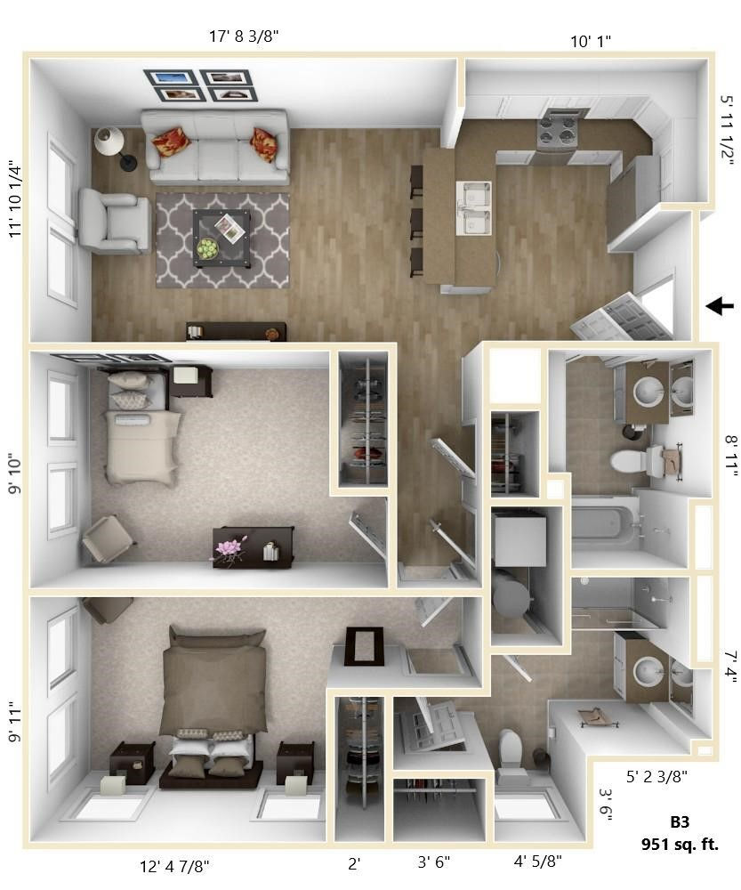 Apartment Model: 2BR-B7 - 2BR$3,1502 Bedroom, 2 Bath, 1308 sq ftAvailable Now![]()