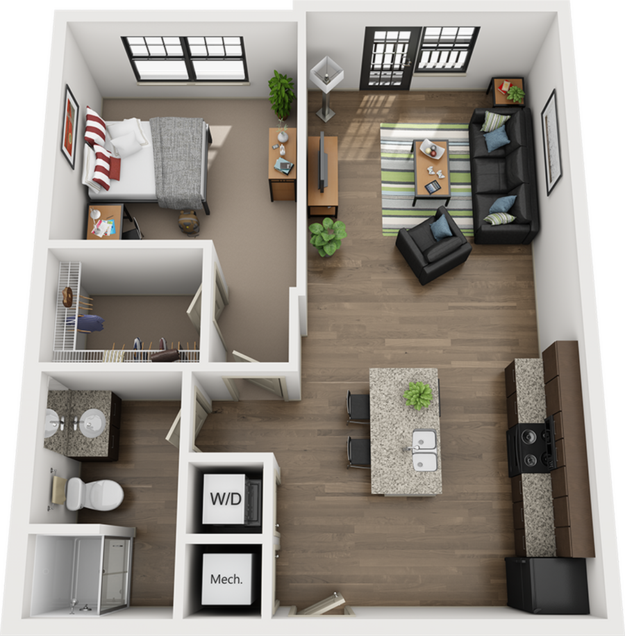 1 Bed, 1 Bath, 591 sq ftAvailable NowModel Gallery