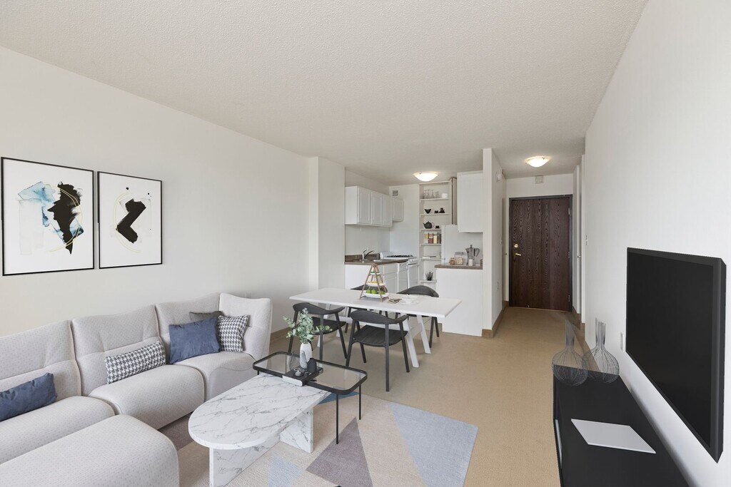 Simplify your home with this efficient space. An open concept dining and living room area allows for creativity to make this space fit your lifestyle. Enjoy the downtown views with either city or river options.