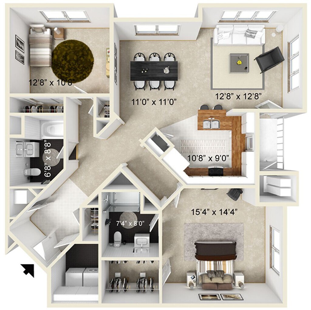 2 Beds, 2 Baths, 1160 sq ftAvailable NowModel Gallery