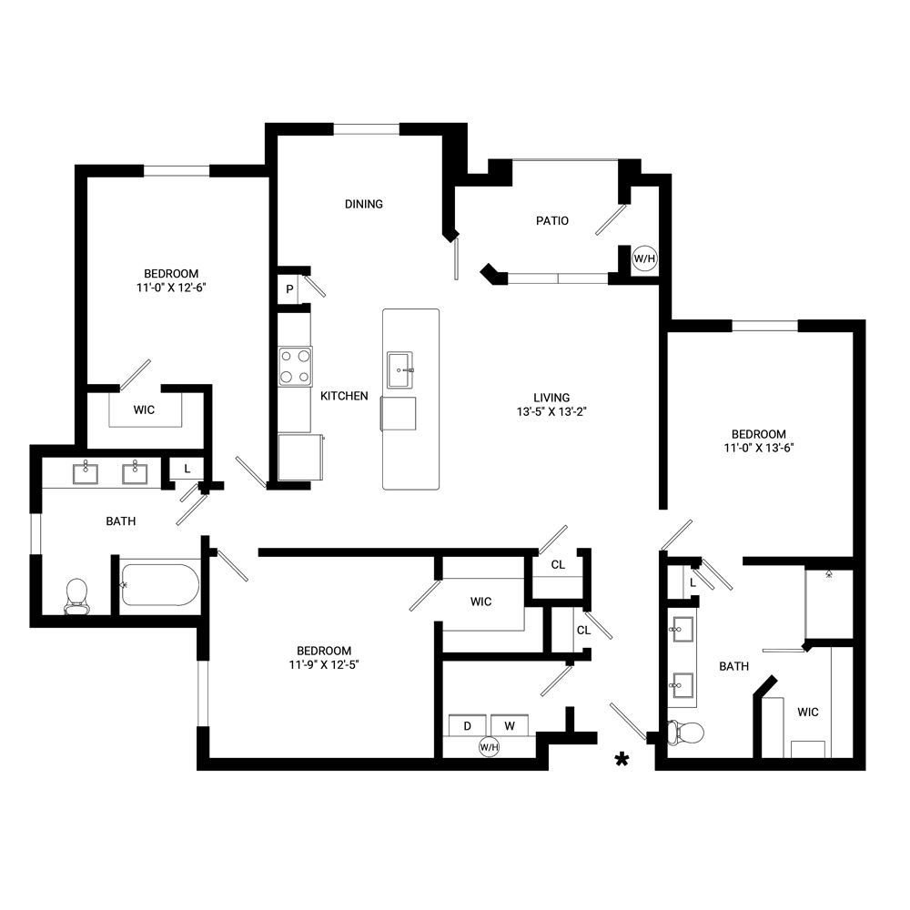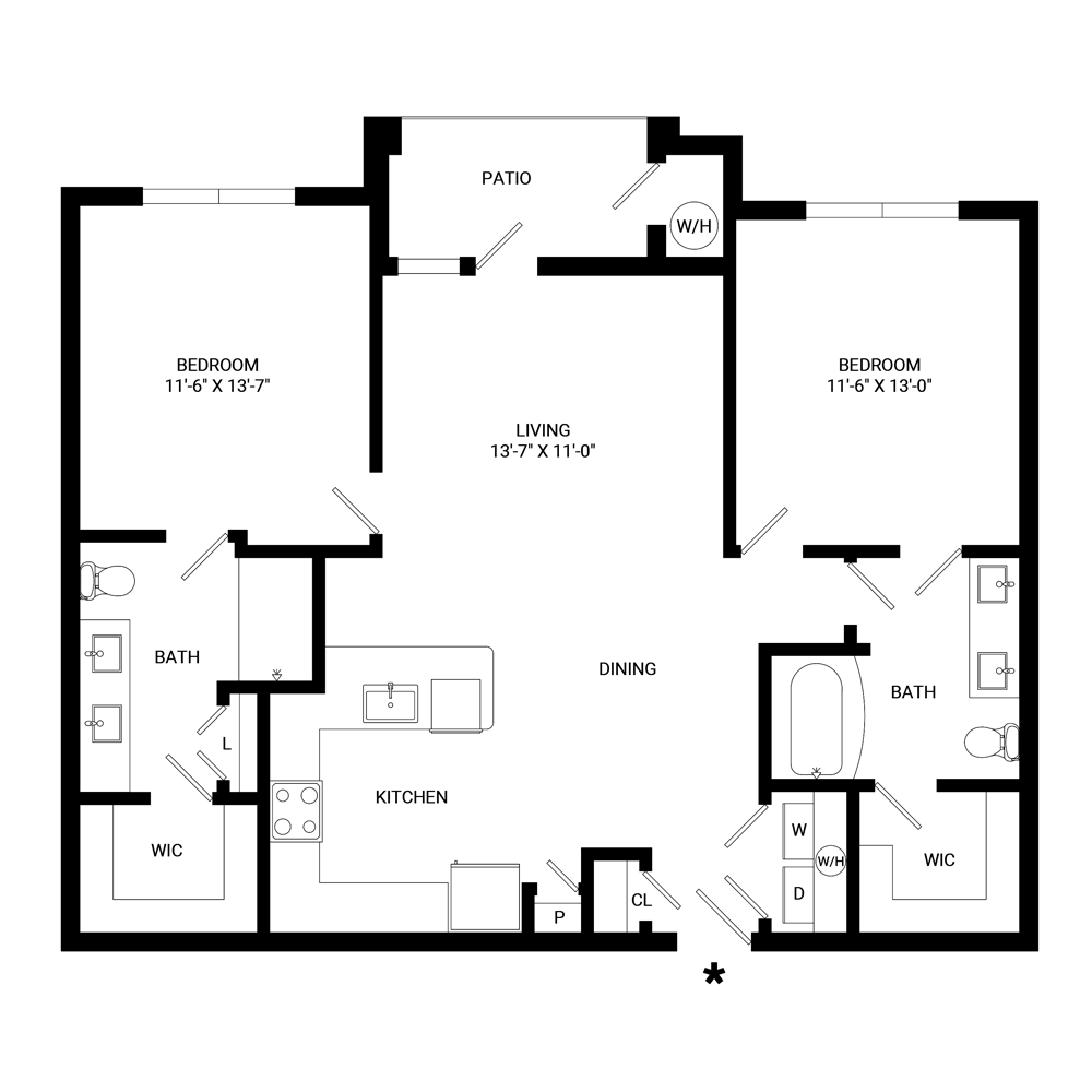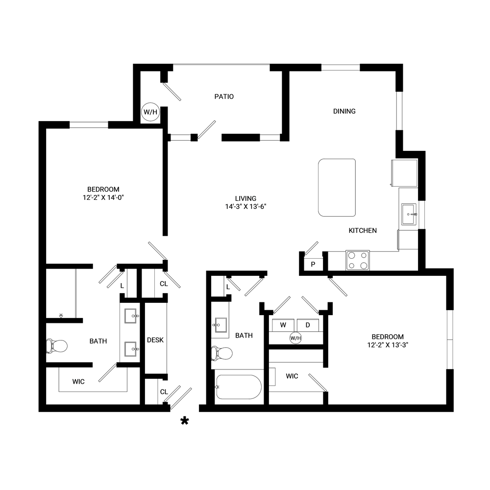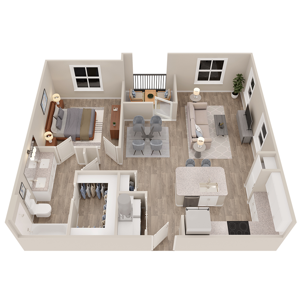 1 Bed, 1 Bath, 752 sq ftAvailable NowModel Gallery