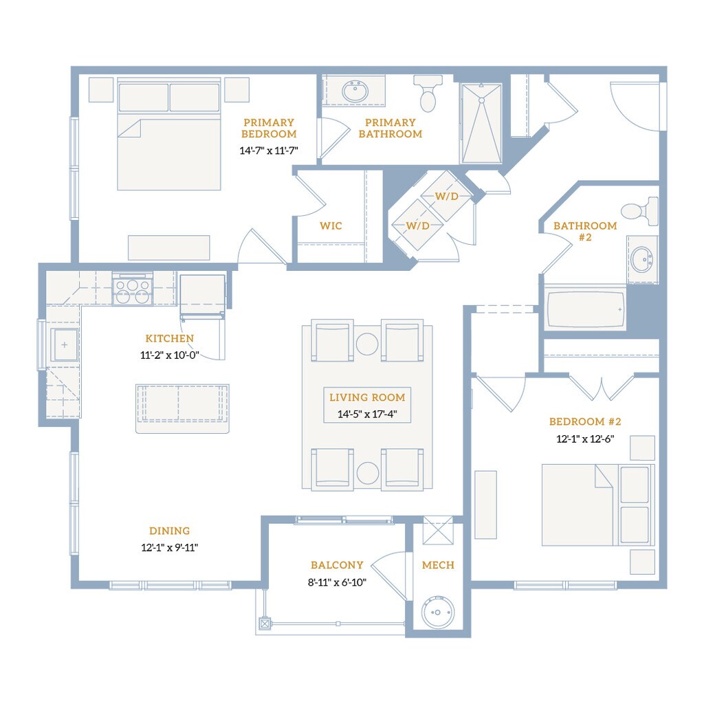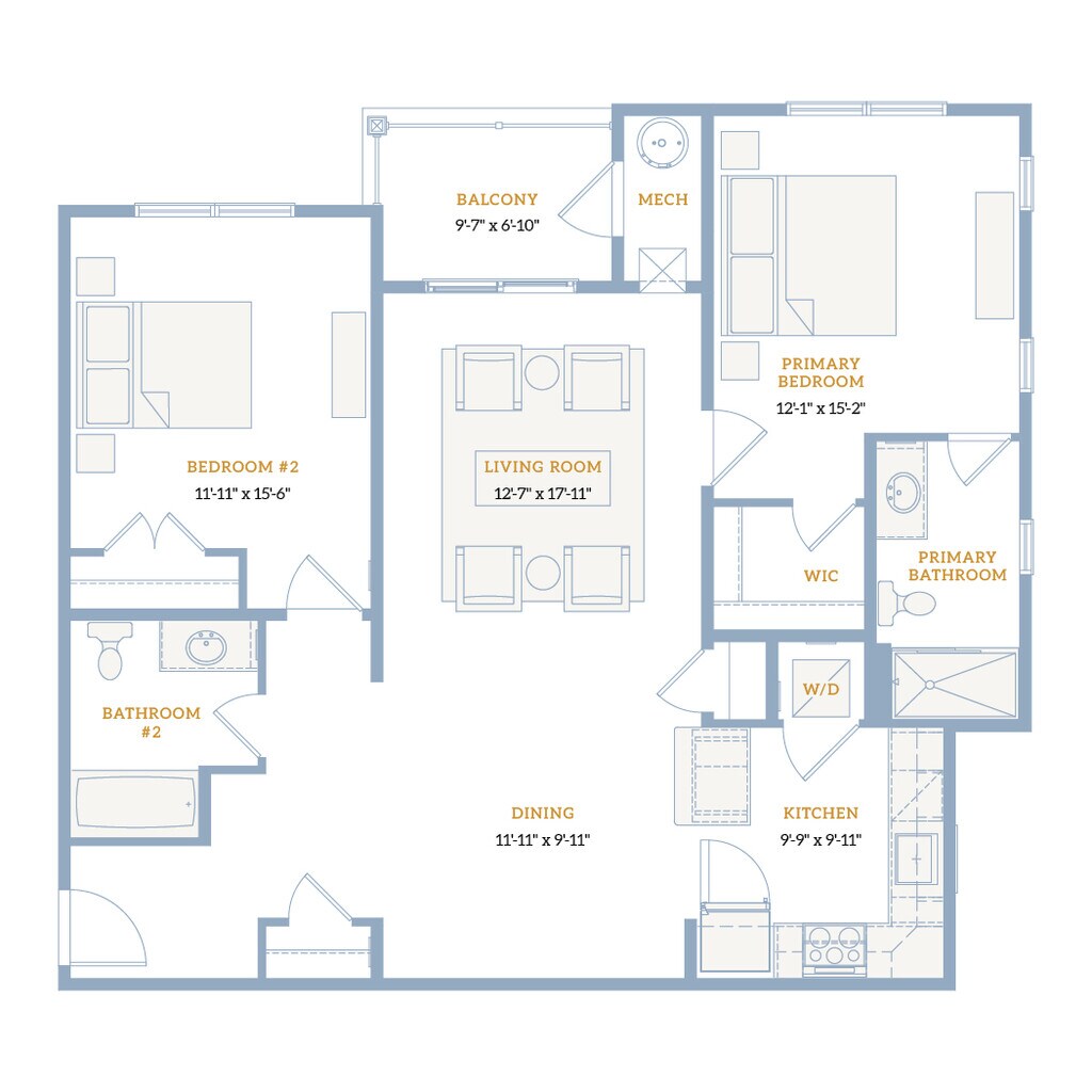 Apartment Model: B2ACall For Rates2 Bedroom, 2 Bath, 1047 sq ftAvailable May 21, 2026![]()