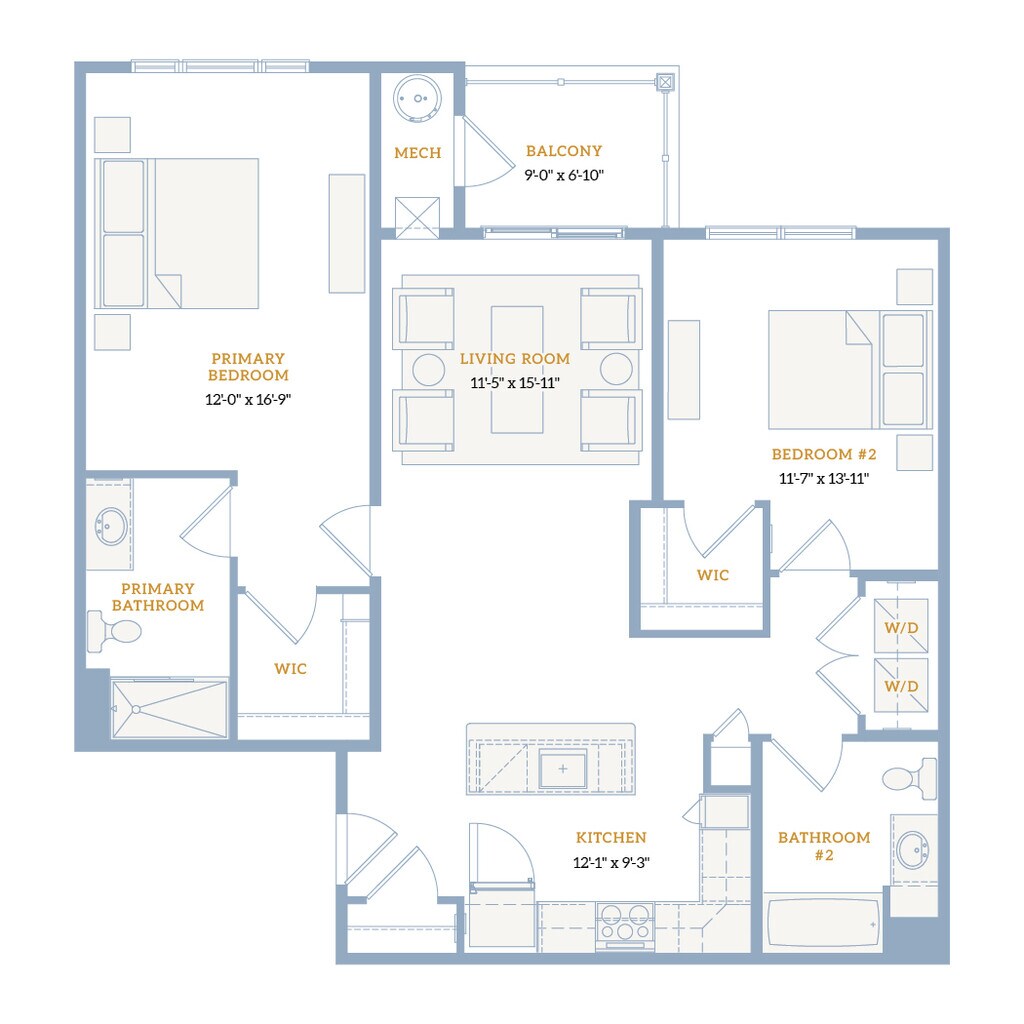 Apartment Model: B2CCall For Rates2 Bedroom, 2 Bath, 1074 sq ftAvailable May 21, 2026![]()
