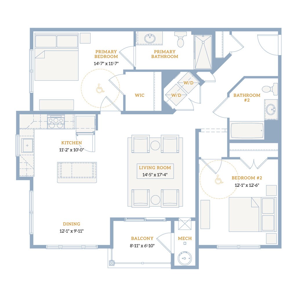 Apartment Model: B2FCall For Rates2 Bedroom, 2 Bath, 1120 sq ftUnavailable![]()