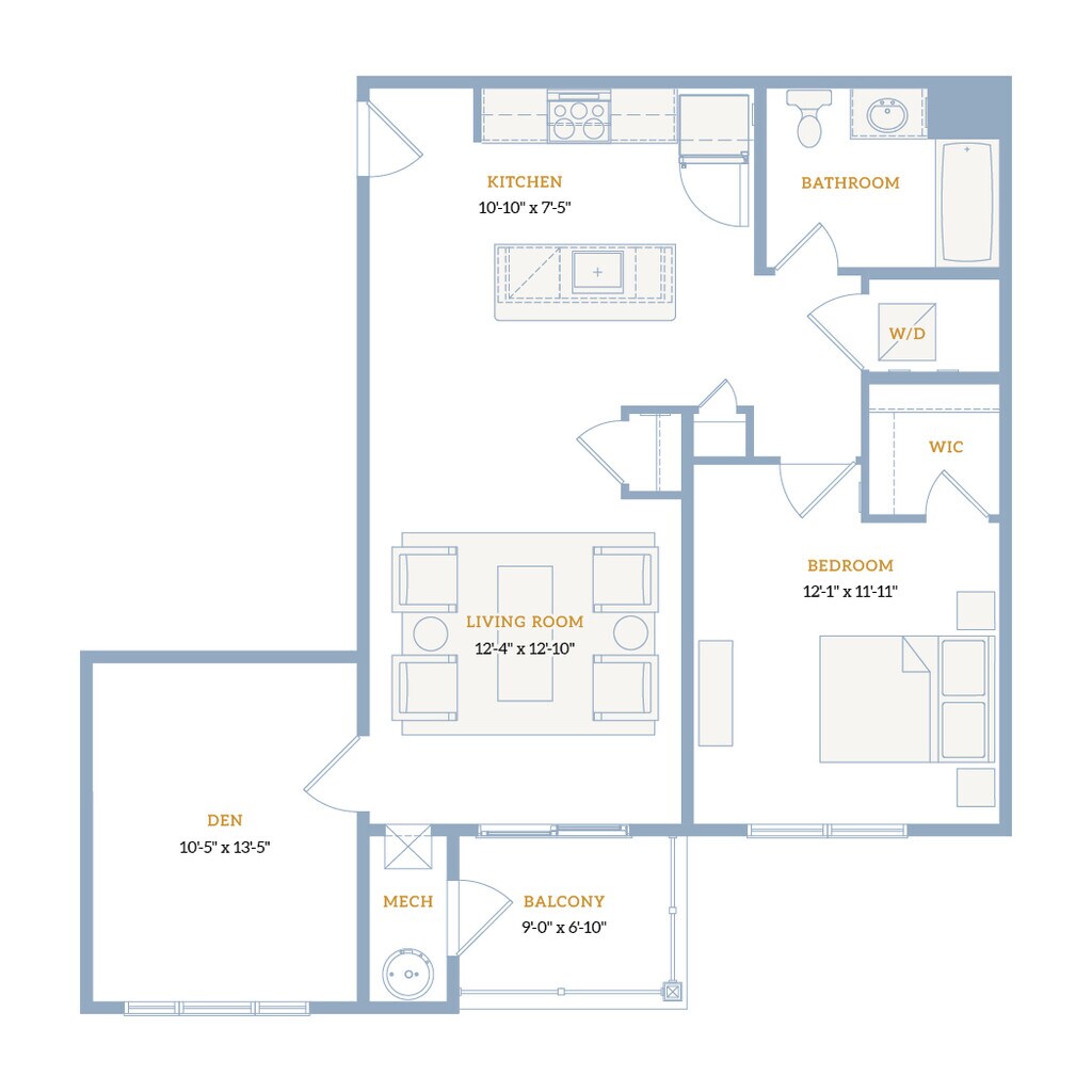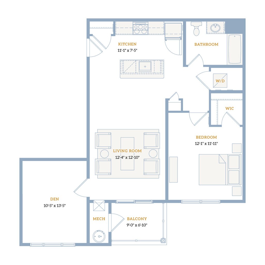 1 Bed, 1 Bath, 757 sq ftModel Gallery