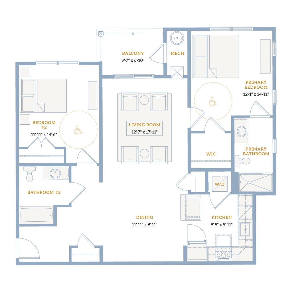 Apartment Model: B2DCall For Rates2 Bedroom, 2 Bath, 1077 sq ftAvailable May 21, 2026![]()