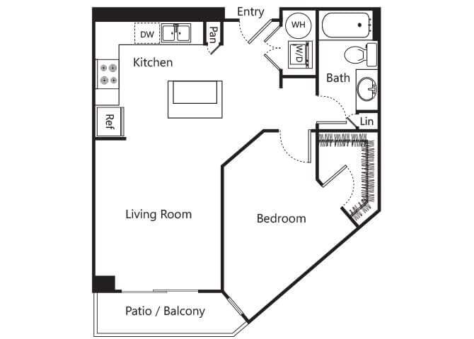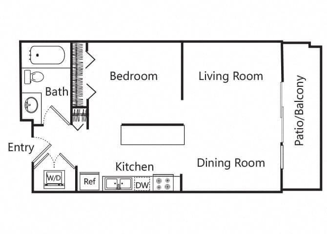 Apartment Model: S3Call For RatesStudio, 1 Bath, 638 sq ftUnavailable![]() - S3 - Floorplan 1