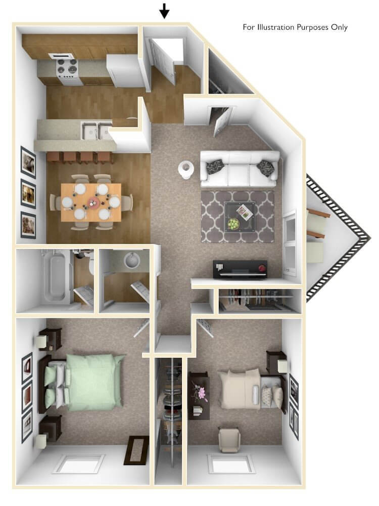 1 Bed, 1 Bath, 644 sq ftAvailable NowModel Gallery