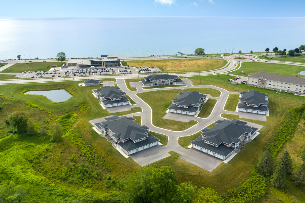 Rivers Edge Apartments are Manitowoc’s premier living option for those with an active lifestyle. Our apartments are located right on a trail that connects Lincoln Park with the Mariner’s Trail for easy access to the Lincoln Park Zoo, Lake Michigan, the marina, tennis courts, playgrounds and much more! Rivers Edge Apartments also has a clubhouse, featuring a secure mailroom, fitness center, business center, gathering room with kitchenette and a patio overlooking the ponds. Each of our spacious apartments feature one and two car attached garages (EV charger-ready), 9 foot ceilings, KOHLER fixtures, granite counter tops, composite decks, washer and dryer in unit and many more desirable options. The apartments also have large windows to take advantage of the scenic views of Lake Michigan, Lincoln Park and the Little Manitowoc River.