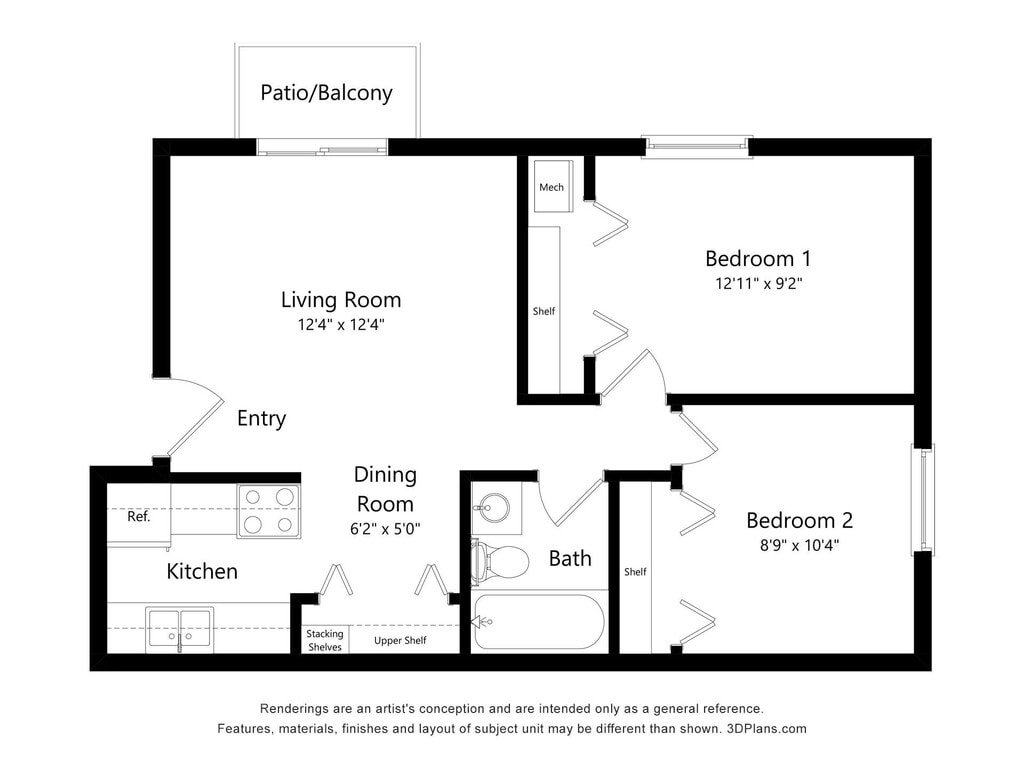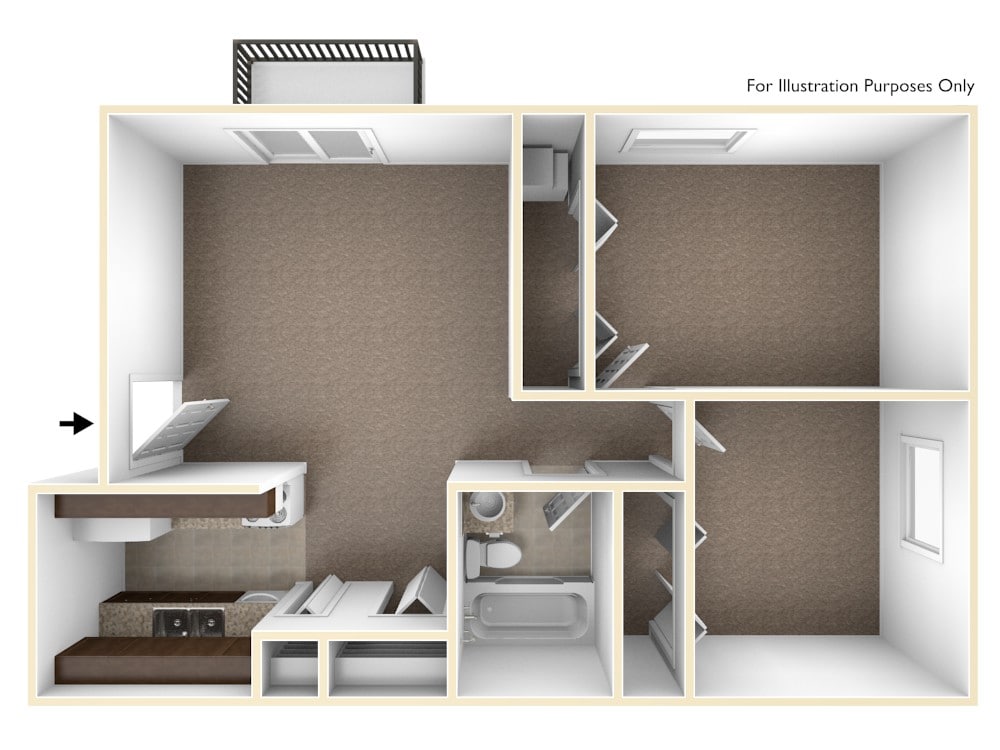 2 Beds, 1 Bath, 660 sq ftAvailable NowModel Gallery