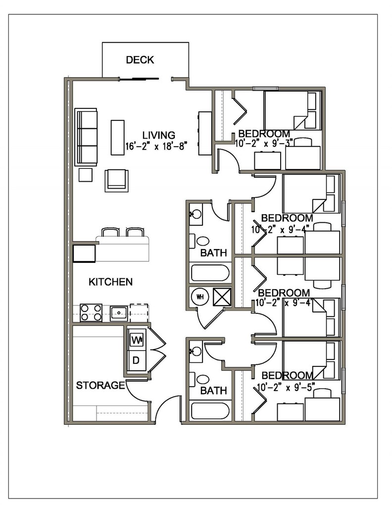 3BR/2BA - Floorplan 4 4 Bedrooms