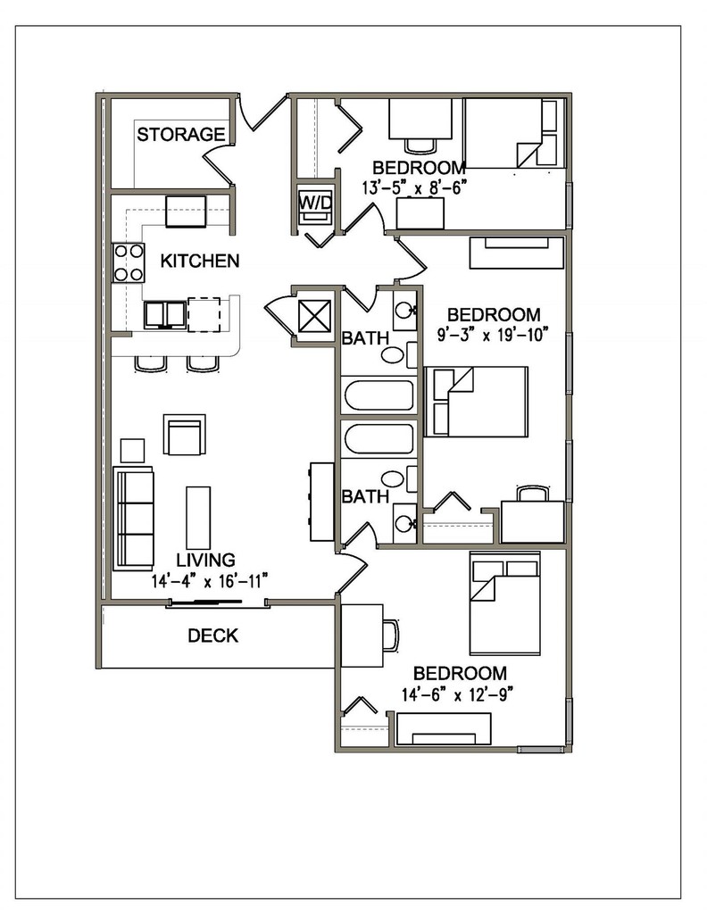 2BR/2BA - Floorplan 1 3 Bedrooms