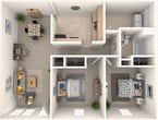 2 Beds, 1 Bath, 864 sq ftModel Gallery