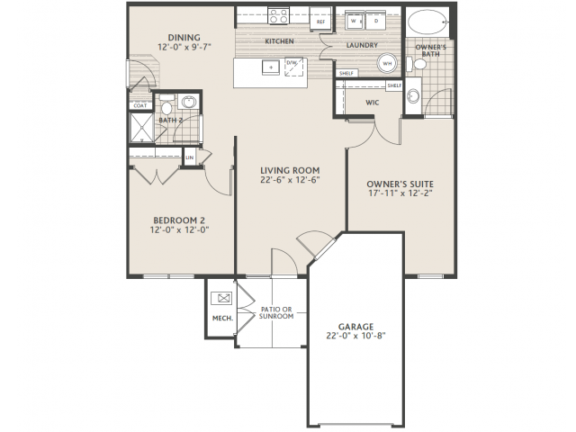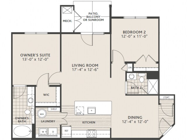 2 Bedroom (RS2) - Floorplan 1 Apartment Unit: 400P-IApartment Model: 2 Bedroom (RS2)$1,7792 Bedroom, 1 Bath, 1014 sq ftAvailable Now2 Bedroom 2 Bath - W
