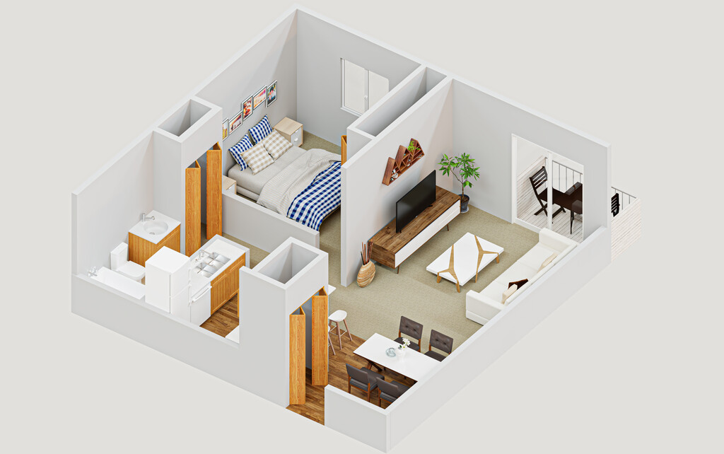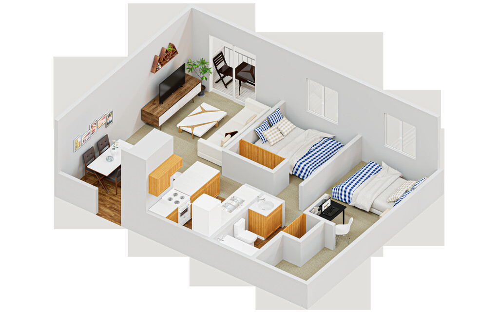 Apartment Model: 1BR ApartmentFrom $1,0051 Bedroom, 1 Bath, 675-860 sq ftAvailable Now![]()