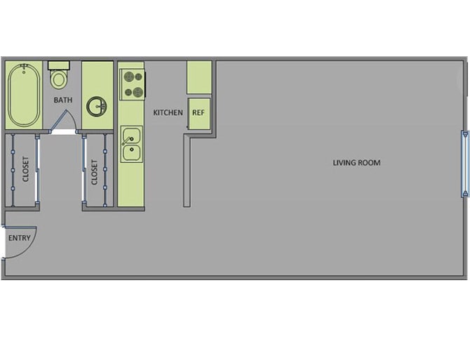 Studio, 1 Bath, 500 sq ftModel Gallery