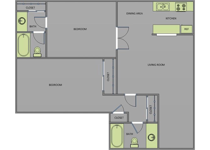 2 Bedroom 2 Bath - Floorplan 1 ![]()