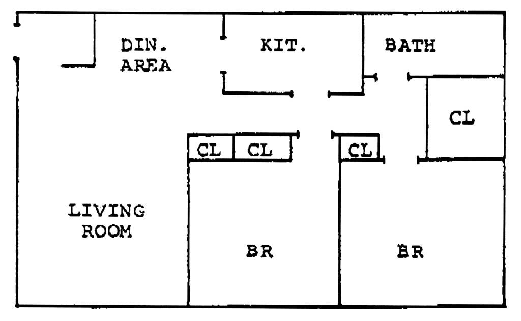 Apartment Model: Two Bedroom - Virginia2 Bedroom, 1 Bath, 770-800 sq ftUnavailableTwo Bedroom - Virginia - Floorplan 1 Two Bedroom - Riverside