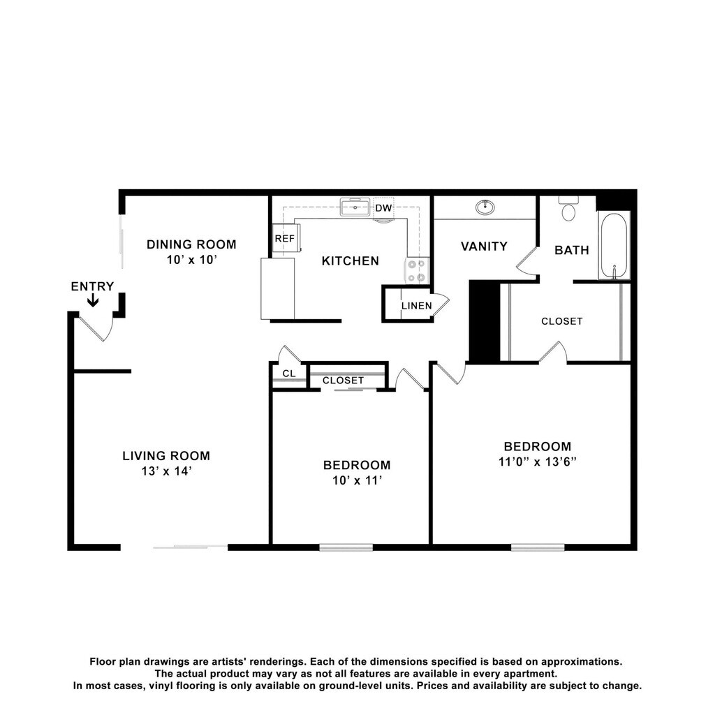 2 Beds, 1 Bath, 980 sq ftAvailable NowModel Gallery