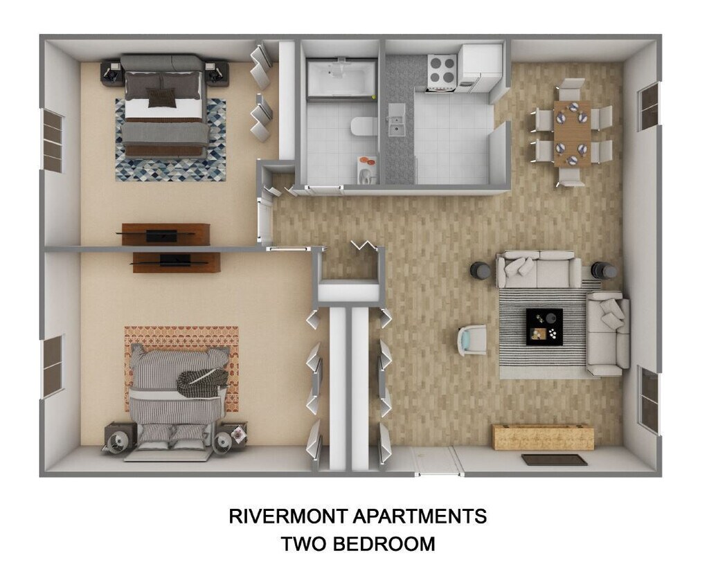 2 Beds, 1 Bath, 800 sq ftModel Gallery