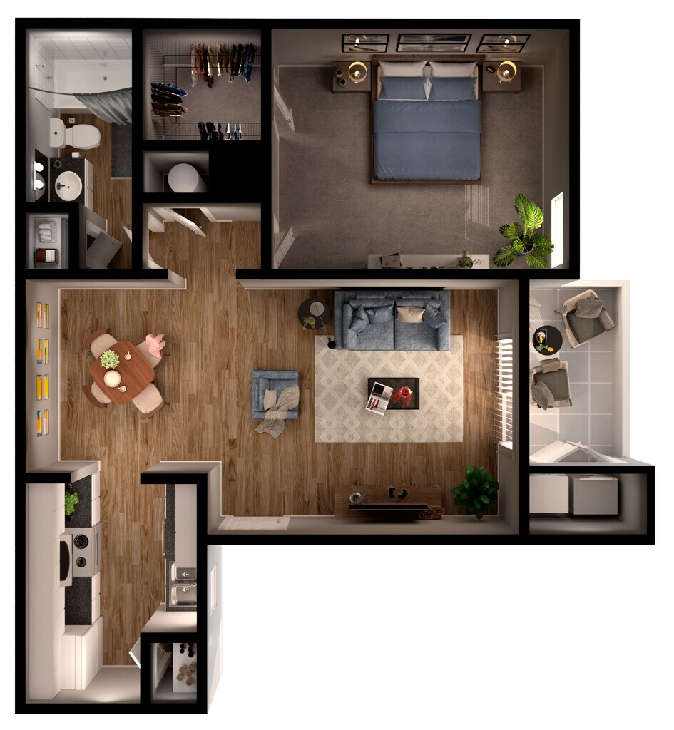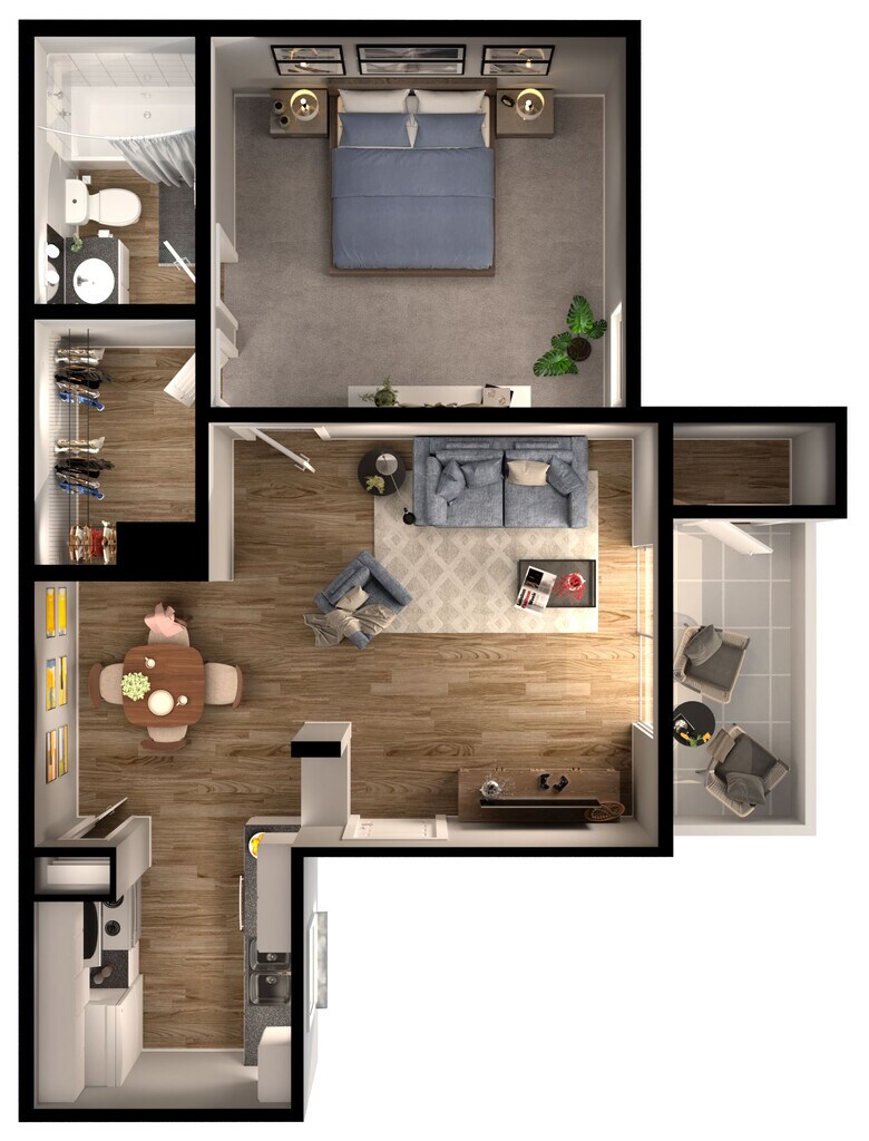 1 Bed, 1 Bath, 571 sq ftModel Gallery